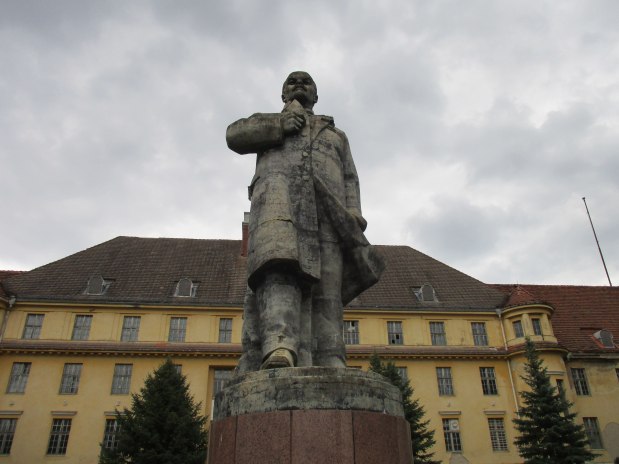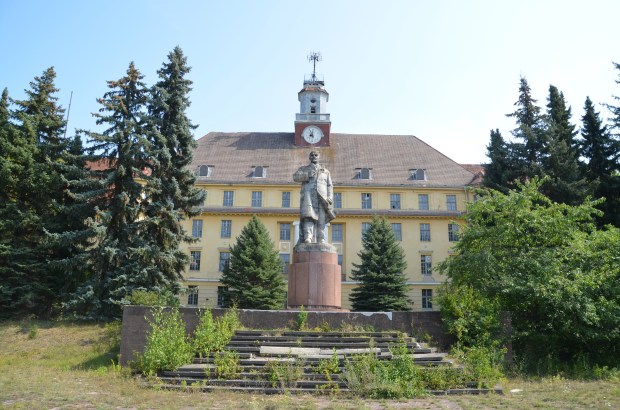 Von der Höhe seines rötlichen Sockels schaut Lenin mit ernster Miene auf den verlassenen Sportplatz, der auch als Appellplatz diente. Einst marschierten hier regelmäßig hunderte von Soldaten mit adretten Uniformen und begrüßten ihren Helden mit Würde und Respekt, aber jetzt kann sich der kommunistische Revolutionär nur noch an die Bäume und Büsche wenden. Die gesamte Anlage ist ein Zeugnis der Vergessenheit, aus dem immerhin noch ein leichter Schimmer vom fernliegenden Glanz des Hauptquartiers des sowjetischen Oberkommandos in Deutschland wahrzunehmen ist.