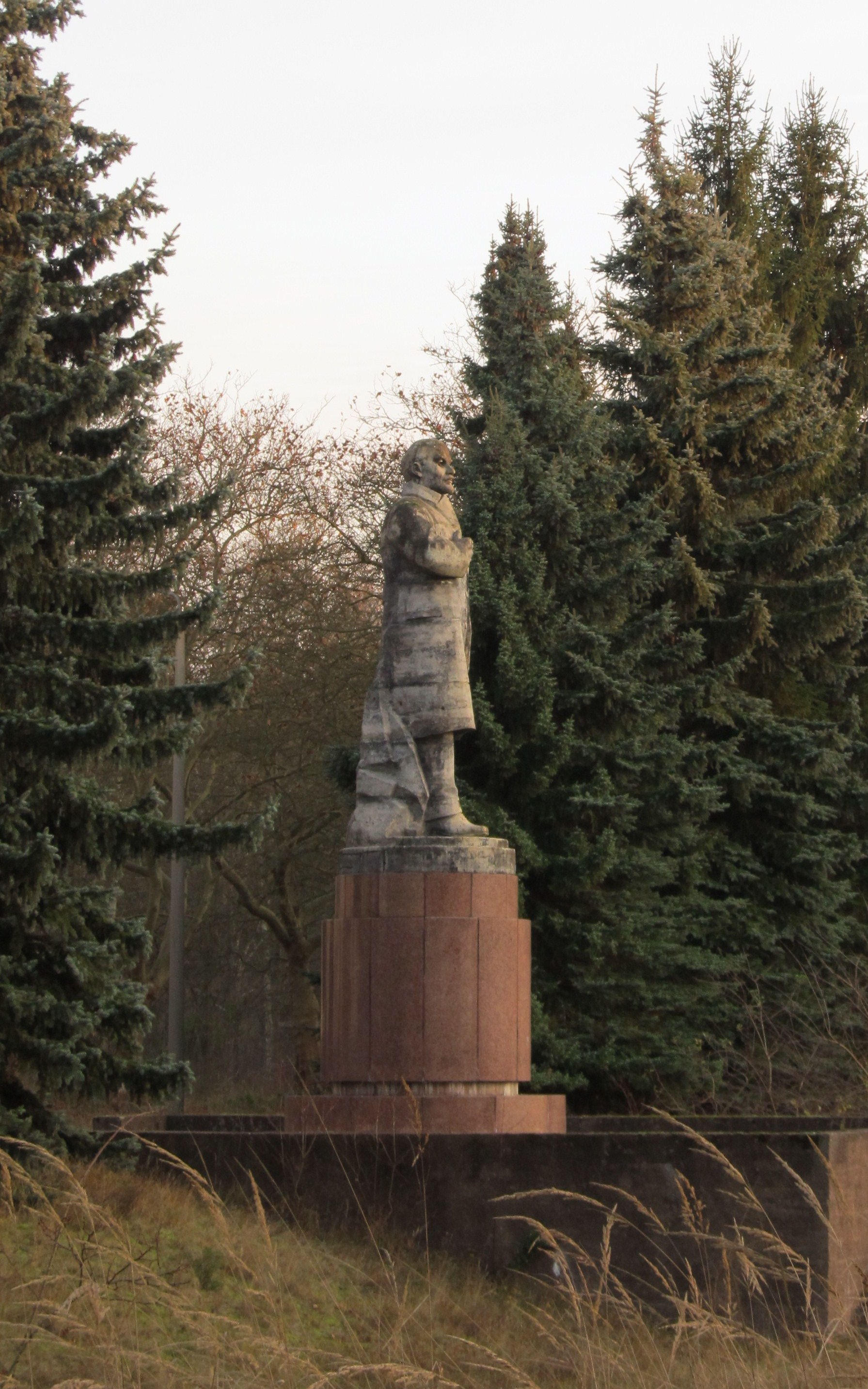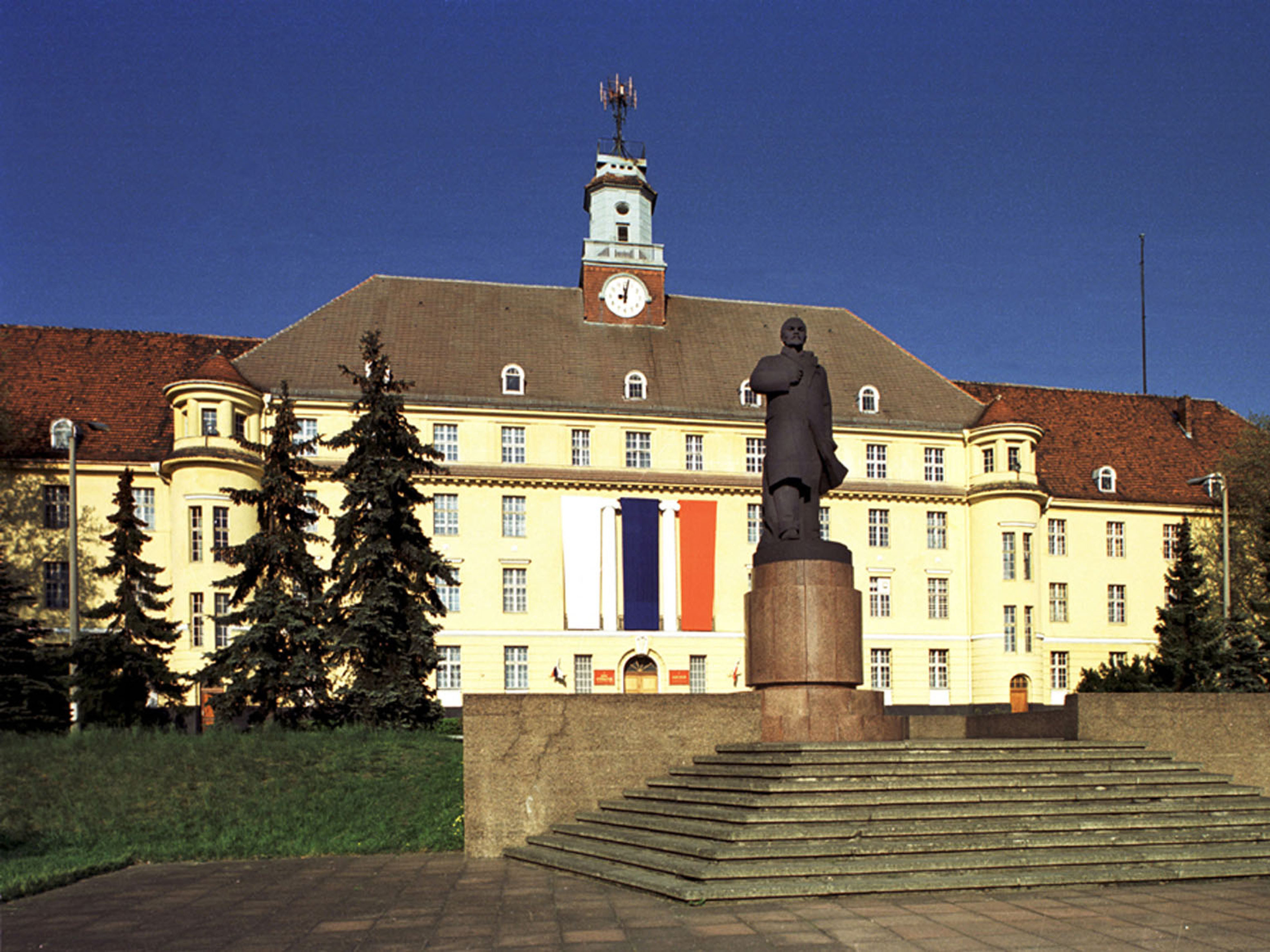 Von der Höhe seines rötlichen Sockels schaut Lenin mit ernster Miene auf den verlassenen Sportplatz, der auch als Appellplatz diente. Einst marschierten hier regelmäßig hunderte von Soldaten mit adretten Uniformen und begrüßten ihren Helden mit Würde und Respekt, aber jetzt kann sich der kommunistische Revolutionär nur noch an die Bäume und Büsche wenden. Die gesamte Anlage ist ein Zeugnis der Vergessenheit, aus dem immerhin noch ein leichter Schimmer vom fernliegenden Glanz des Hauptquartiers des sowjetischen Oberkommandos in Deutschland wahrzunehmen ist.