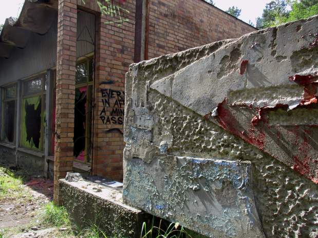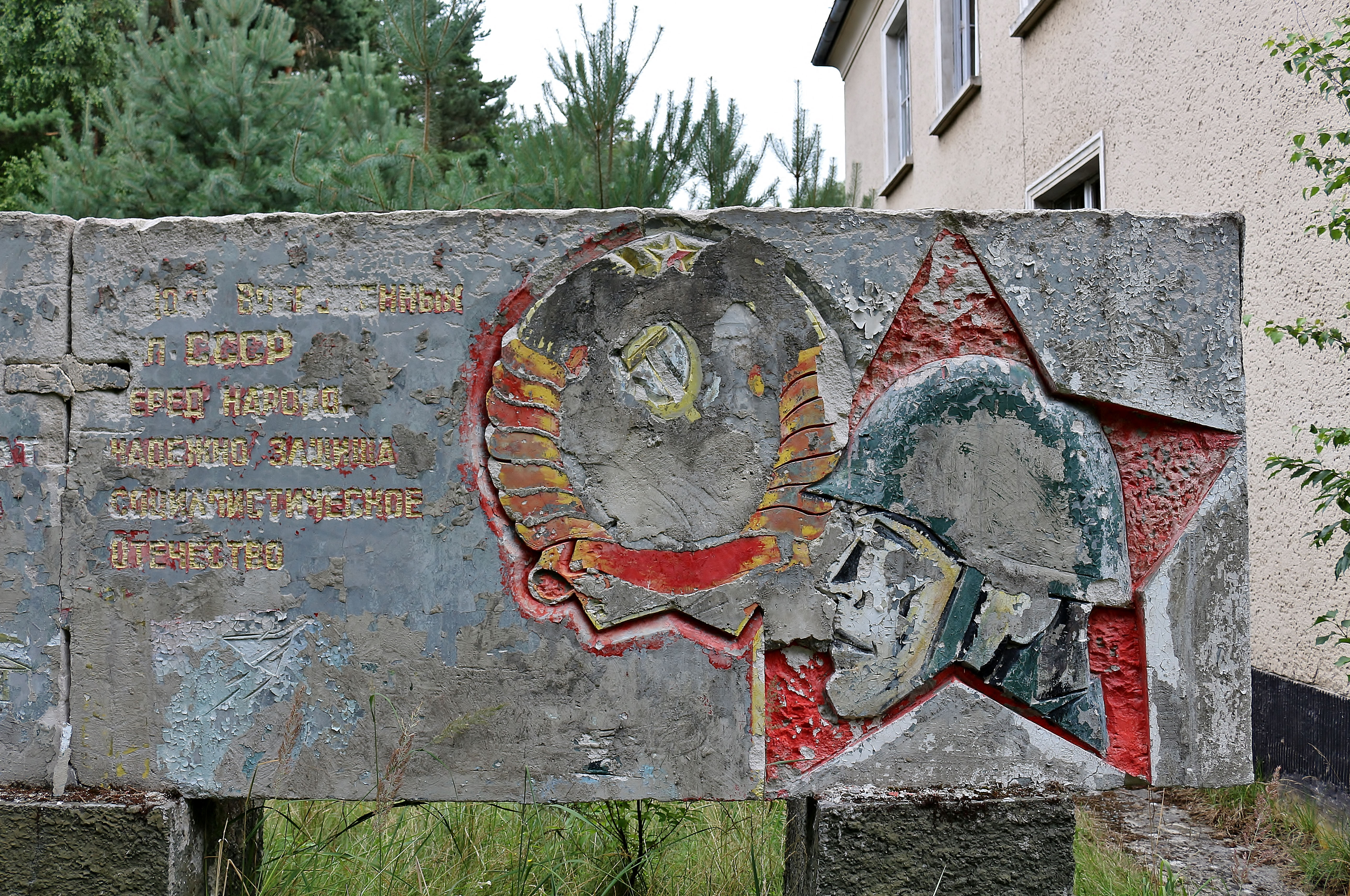 In the scope of a local project of renaturation, all of the buildings will be demolished, in order to return control of the area to trees, bushes and boars. The bullets and bombs of the Red Army, that are still over the place, are slowing down the whole process , but the construction machines are already on site and actually have already steamrolled big areas of the complex. In the undamaged part you can still find Lenin, in form of a sculpture in relief. He is still standing there with his keen pose, between the old café and the house of the officers, however by now he will definitely have abandoned hope. He sees the diggers working at the end of the little path in front of him and knows, specially since the local agency for monument conservation declined the request of protection for the murals of this old military base, that his death sentenced is irrevocable.