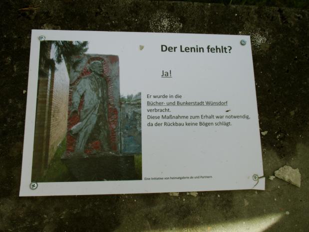 UPDATE September 2017: Und nun ist es tatsächlich so weit, der Vogelsanger Lenin ist weg! Er wurde jedoch nicht von der Abrissbirne zerschmettert, sondern von privaten Kunsthistorikern gerettet und nach Wünsdorf gebracht, wo er vor dem Museum „Roter Stern“ aufgestellt wurde. Da sämtliche Anträge auf Denkmalschutz für einzelne Elemente des Militärkomplexes von den Behörden abgelehnt wurden, war dies die einzige Form dieses authentische Zeugnis der ostdeutschen Vergangenheit zu bewahren. Der Rest der Anlage, inklusive anderer Reliefs und Wandbilder, wird im Rahmen der geplanten Konversion abgerissen werden (Neuer Beitrag mit aktuellen Fotos: siehe HIER).