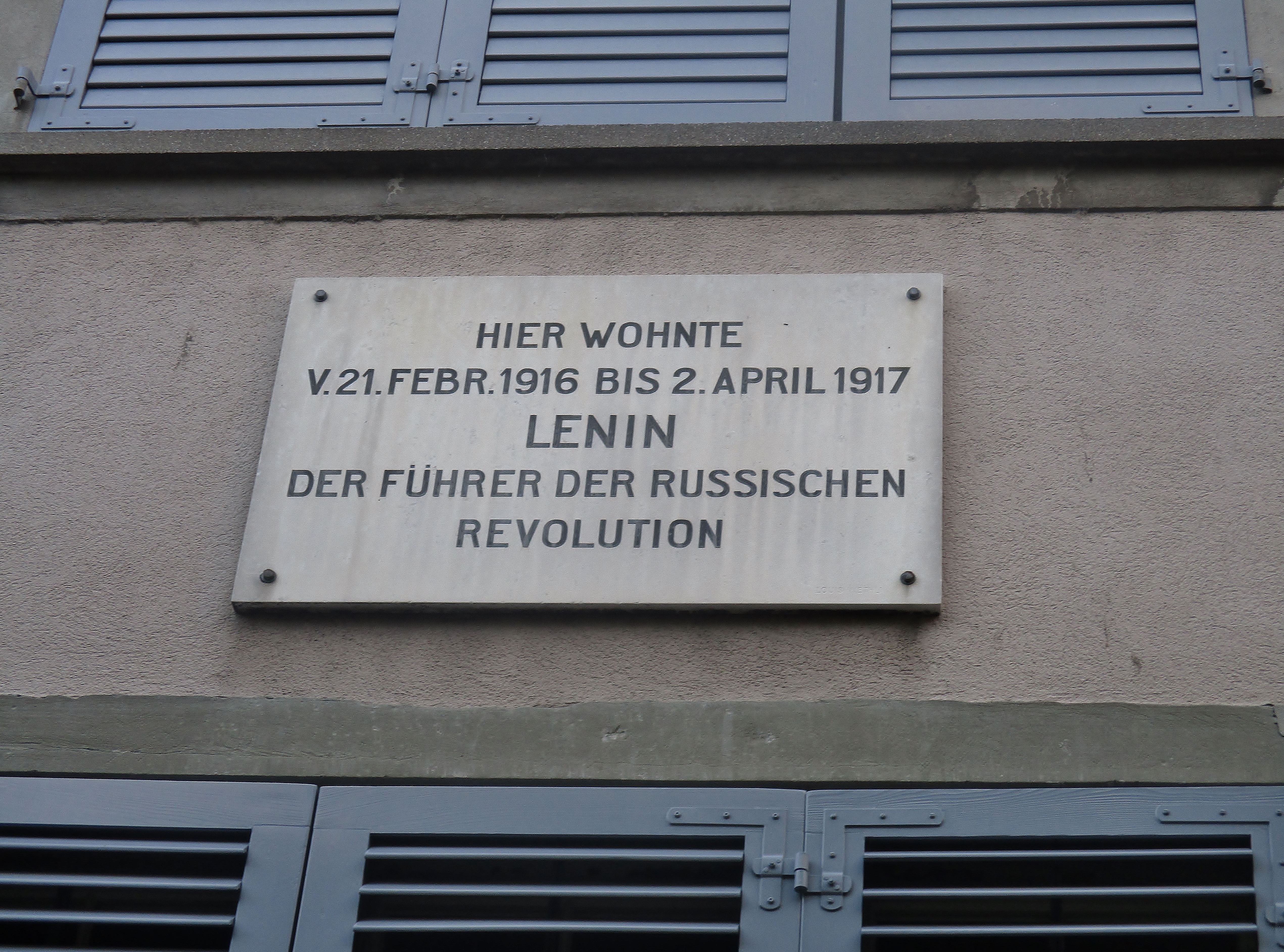 Nowadays, in Zürich there are two commemorative plaques dedicated to Lenin: One is hanging on the house at Spiegelgasse 14, where the Communist thinker and his wife lived from 21st February 1916 until 2nd April 1917. The second plaque is located in the cultural center “Zürcher Volkshaus”. In 1917 Lenin held two speeches there. The first one in January about the “Bloody Sunday” in Saint Petersburg that took place in 1905, when hundreds of demonstrators were killed by the Russian Army. The second one in March, analyzing the situation in Russia at that time and the possibility of a new revolution.
