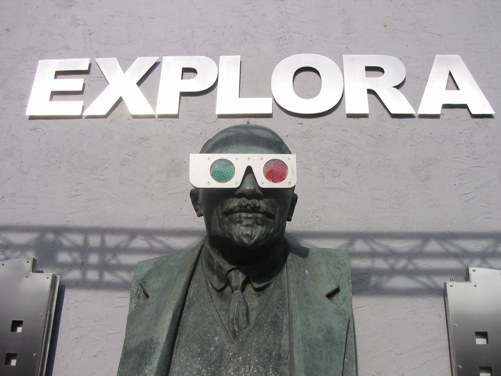 So überraschend es auch klingen mag, gibt es in Frankfurt a.M. ein Lenindenkmal. Vor dem privaten Museum Explora steht eine von einem Schrottplatz gerettete Leninbüste, die dann vom Künstler M. Charlamov mit einer 3D-Brille versehen, Anaglyphowitsch getauft wurde und nun vor dem Museumseingang wacht.