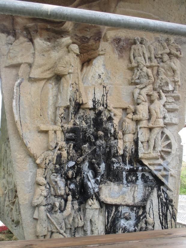 Update 2020: Bei unserem Besuch im Dezember 2020 konnten wir sehen, dass das Denkmal inzwischen schon gereinigt und restauriert wurde. Es ist nun wieder in alter Pracht zu bewundern!