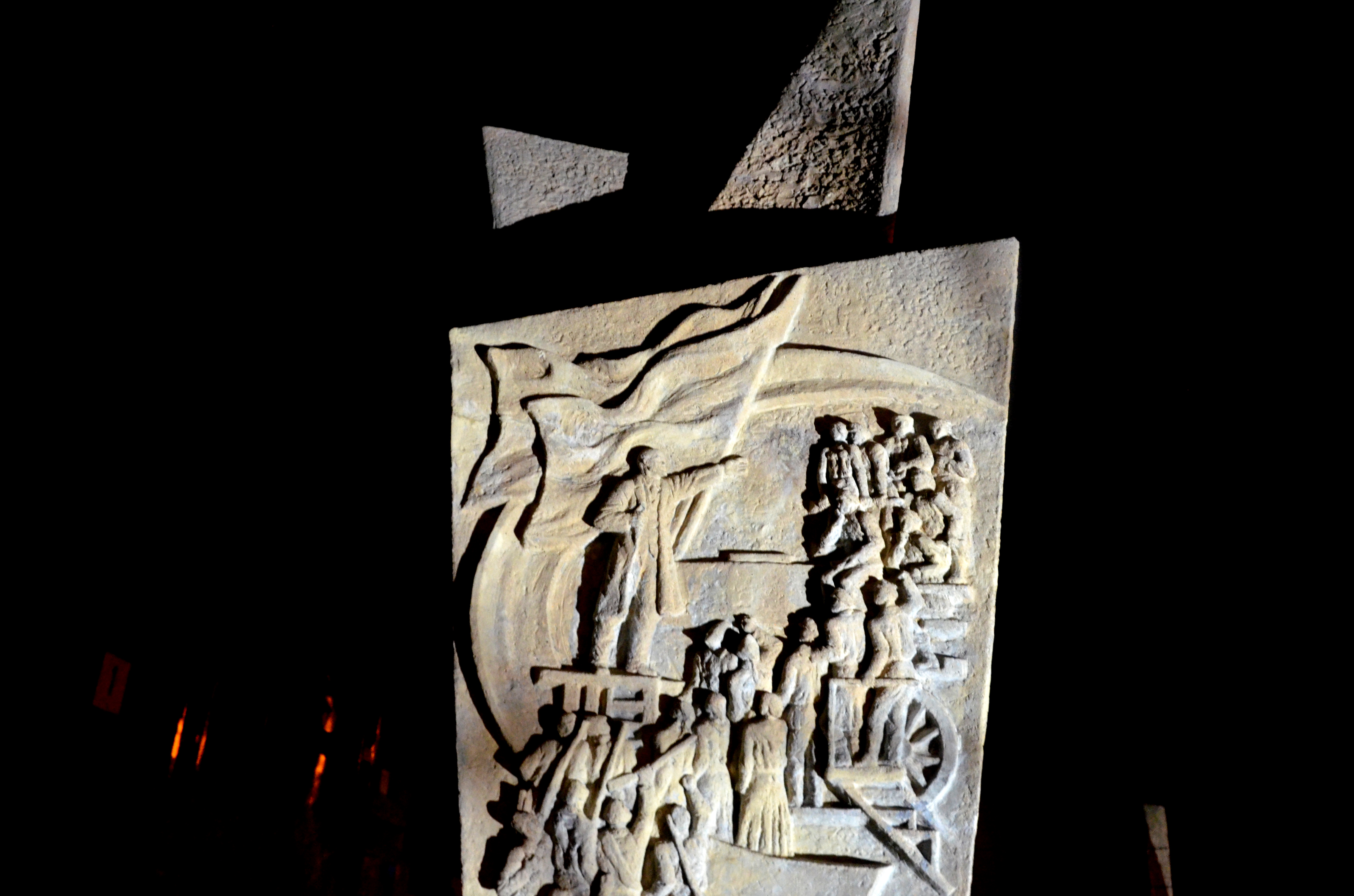 https://leninisstillaround.com/wp-content/uploads/2018/04/2_redner.jpgThe plan of the Lenin-monument came up on the occasion of Lenin’s centenary celebrations, but due to various delays, the concrete stele was only inaugurated one year after, on June 11th of 1971, on the former Leninplatz. The creation of the sculptor Johannes Peschel consists of four sides. One contains a quotation from Lenin: „The most important thing about Marx’s teaching is the clarification of the world-historical role of the proletariat as the creator of socialist society.“ The other sides depict scenes from the history of the revolutionary workers movement: The first relief shows the struggles during the November Revolution (1918) in Großenhain, the last shows the construction of the ideal Socialist society, and the middle picture is dedicated to the Russian October Revolution. Lenin is the central figure here: he is standing in a speaking pose, with his arm outstretched, in front of a cheering crowd. In the background the revolutionary flag of the Bolsheviks is waving.