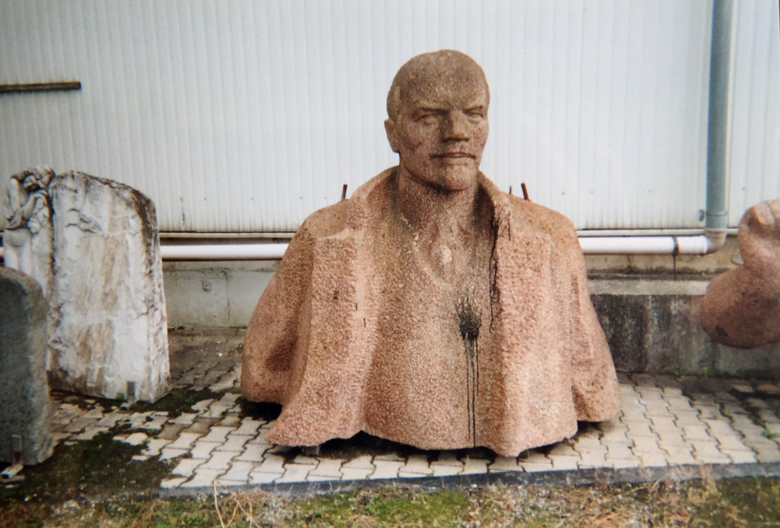 The monument was erected at Wiener Platz in front of the the central station, so that the Lenin figure was also popularly known as the „Red Railway Leader“. Despite its political, art-historical and artistic value, after the reunification the city of Dresden wanted to get rid of the monument as quickly as possible and gave it to the gravestone manufacturer Josef Kurz from Gundelfingen. Kurz began collecting GDR monuments in the early 1990s, but failed with his plan to open a sculpture park. So, the red Lenin is standing now mutilated in front of a depot waiting for better days. In 2017 it was offered in an auction, but there was no potential buyer.
