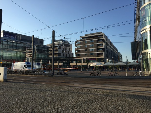 Die Dresdner Leninstatue (alte Postkarte), der Wiener Platz heute und Gundelfingen (Fotos: Klaus Schoetzau).