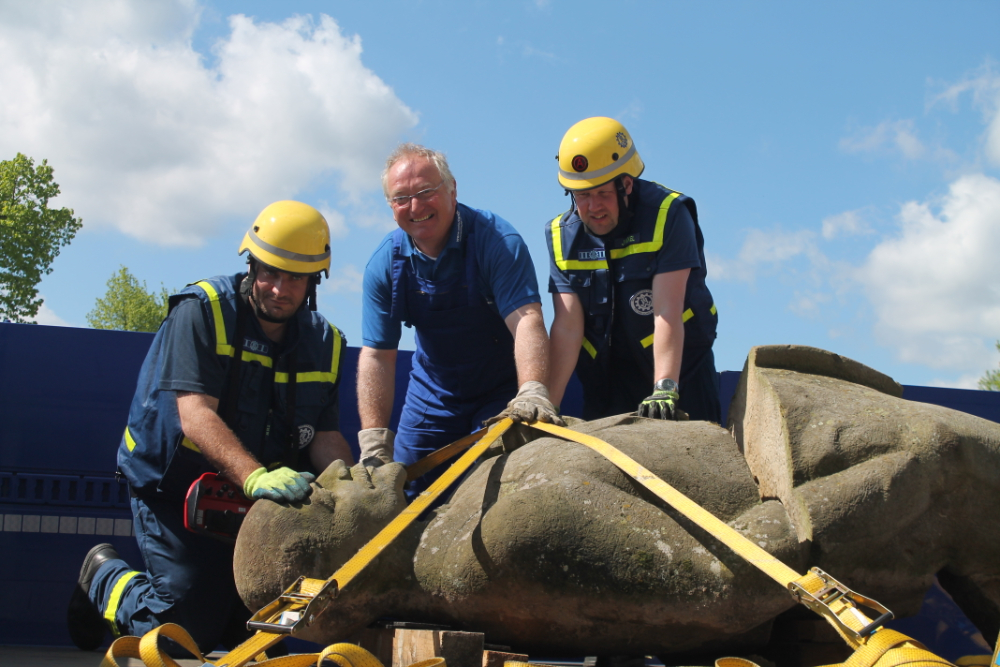 Die 1977 eingeweihte Statue befand in einem sehr schlechten Erhaltungszustand, sodass sie erstmal gründlich saniert werden musste. Inzwischen steht sie in einer der großen Hallen der Dauerausstellung des Vereins IFA-Freunde zwischen alten Pkws, Feuerwehrwagen und andere Exponate der DDR-Ausstellung.