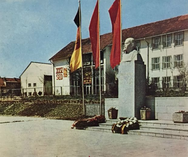 The nearly one metre high bust was inaugurated on the occasion of Lenin’s 100th birthday on 11th April 1970 in front of the newly built secondary school, which was given the name „W. I. Lenin“ that day. The sculpture, created by the Soviet artist N. Gaumig and set on a pedestal over two metres high, was a gift from the Communist Party of Latvia. As a result of the historical connection between Sassnitz and Lenin, who had a short stay in this East German seaport on his way to Russia in April 1917, the figure of the Soviet revolutionary could be found here in many places during GDR times. Besides the bust, there was also a Lenin memorial stone, a small Lenin museum, and one of the six reliefs at the monument to the victims of fascism was dedicated to him.