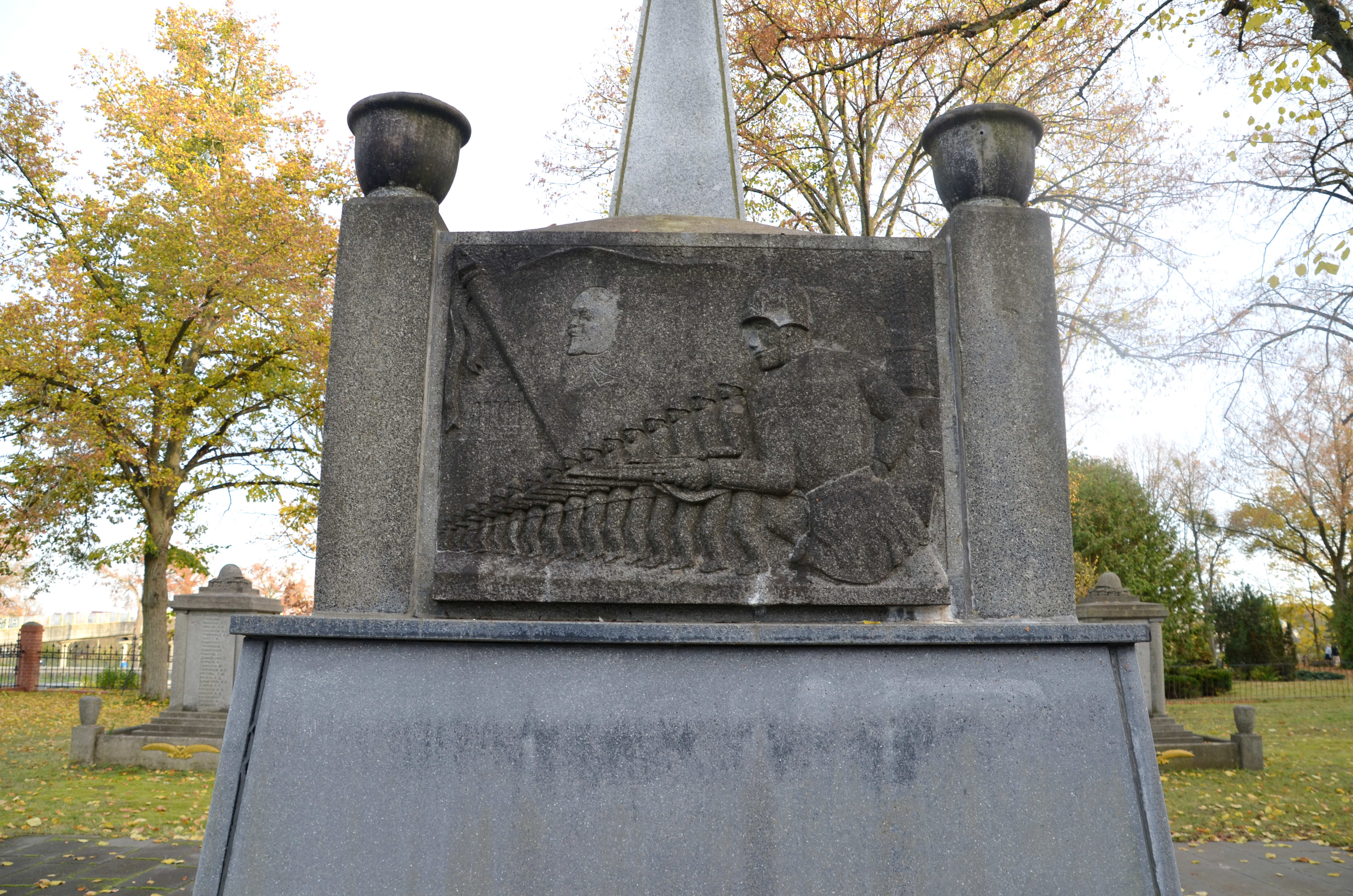 On another side of the stele there is a relief. It is a copy of one of the depictions which can be seen in the Soviet Memorial in Treptower Park in Berlin. It shows Lenin’s head above a group of Red Army soldiers and presents the revolutionary leader as a source of inspiration for them. Furthermore, there is an identical relief in the cemetery of Honour in Hennigsdorf.