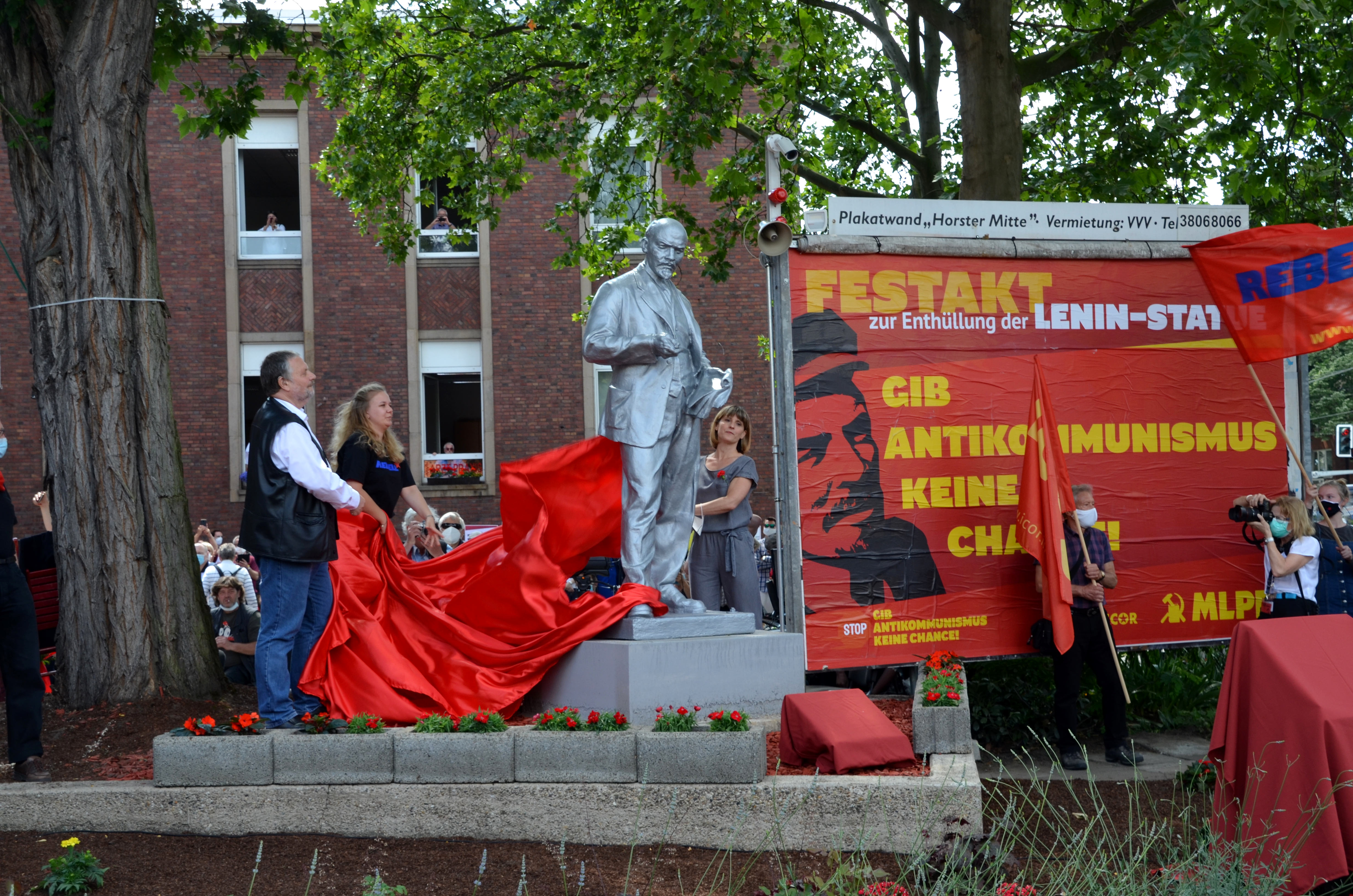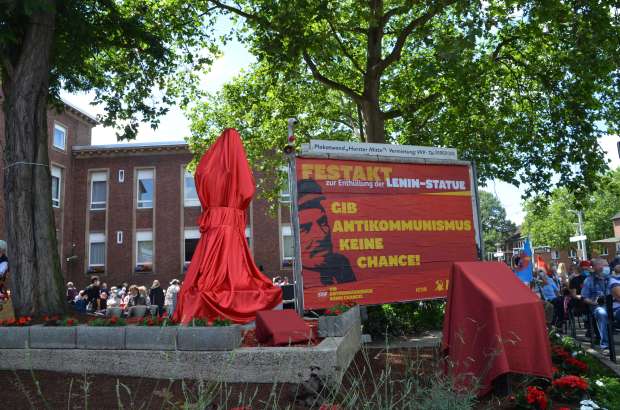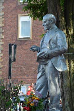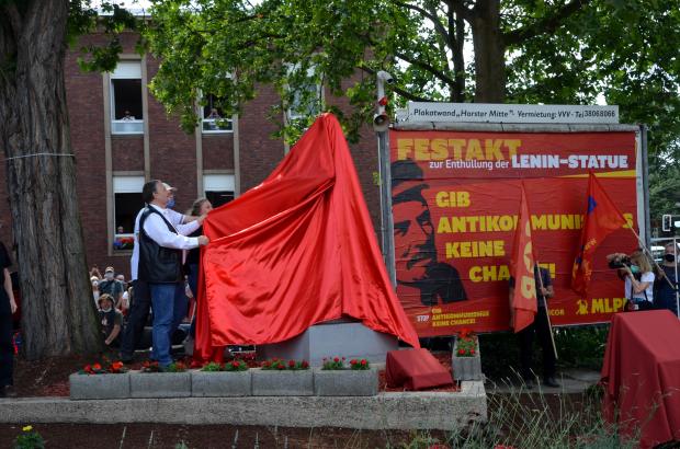 Almost exactly 35 years to the day after the last inauguration of a statue of Lenin on German soil (Schwerin, 22.6.1985), a statue of the Soviet revolutionary leader was unveiled in Gelsenkirchen on 20 June 2020. The 1.2-tonne, 2.10-metre-high cast iron sculpture is located in front of the headquarters of the Marxist-Leninist Party of Germany (MLPD) at the corner of Schmalhorststraße/An der Rennbahn in the district Gelsenkirchen-Horst.