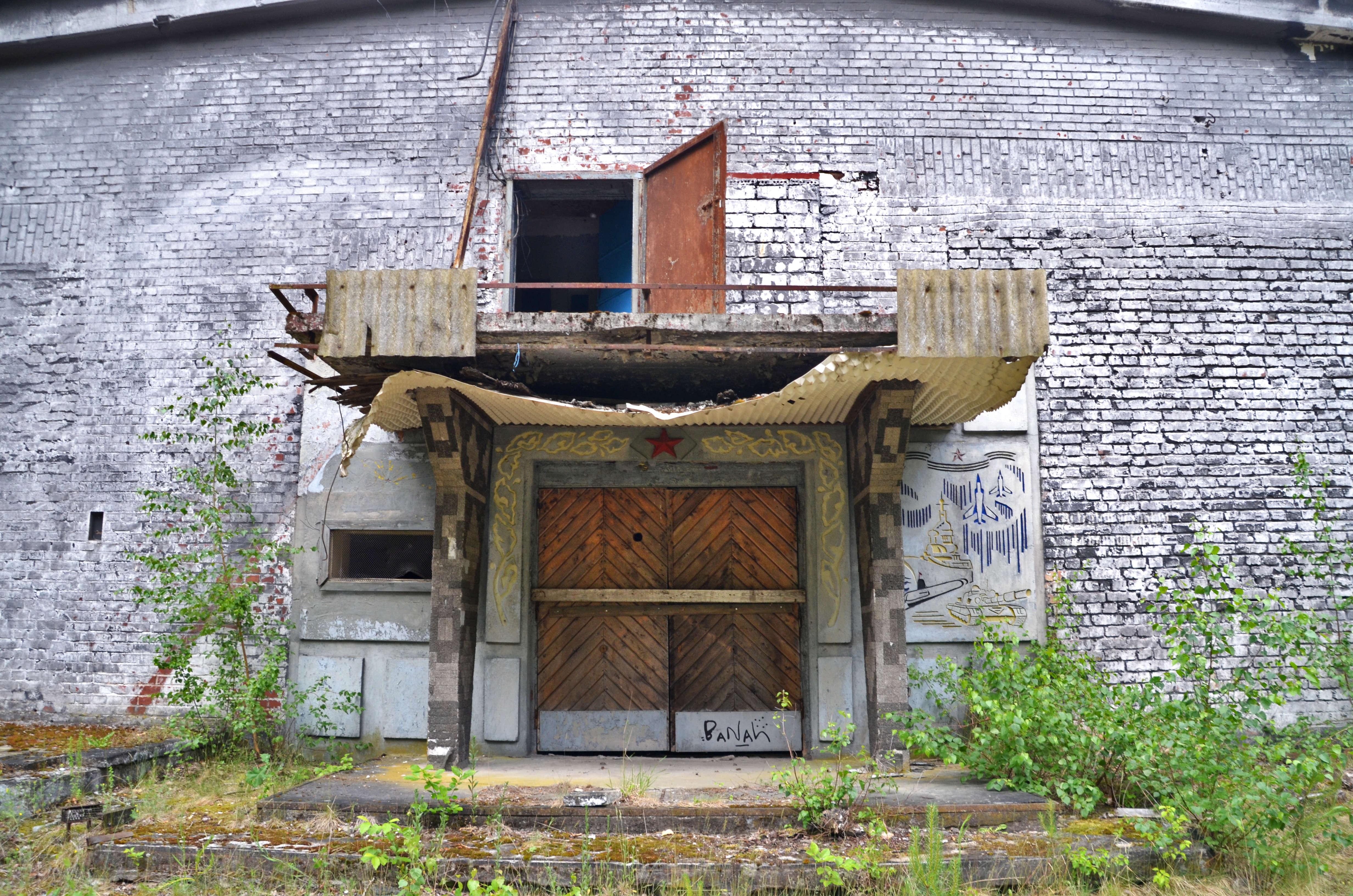 Some of the large halls are now used by local companies as depots, while the rest is empty and has become a post-apocalyptic scenario: abandoned apartment blocks, overgrown entrances to crumbling warehouses, collapsed roofs, peeling façades, the slamming of doors on windy days. Even today, one can still find some traces of the Soviet army here, such as inscriptions, information boards, murals or reliefs.