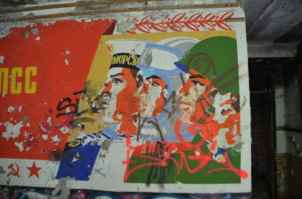 While exploring abandoned objects one constantly comes across graffiti, tags and other works of „street art„. They have become part of the unique landscape of abandoned places. However, they rarely have a concrete connection to the historical sites in which they are located and many visitors tend to perceive them as foreign bodies or disturbing elements. An exception can be seen in Möhlau, where a graffiti artist first renovated a monumental Lenin mural of the Soviet army, only to expand it with a stylized Soviet flag.