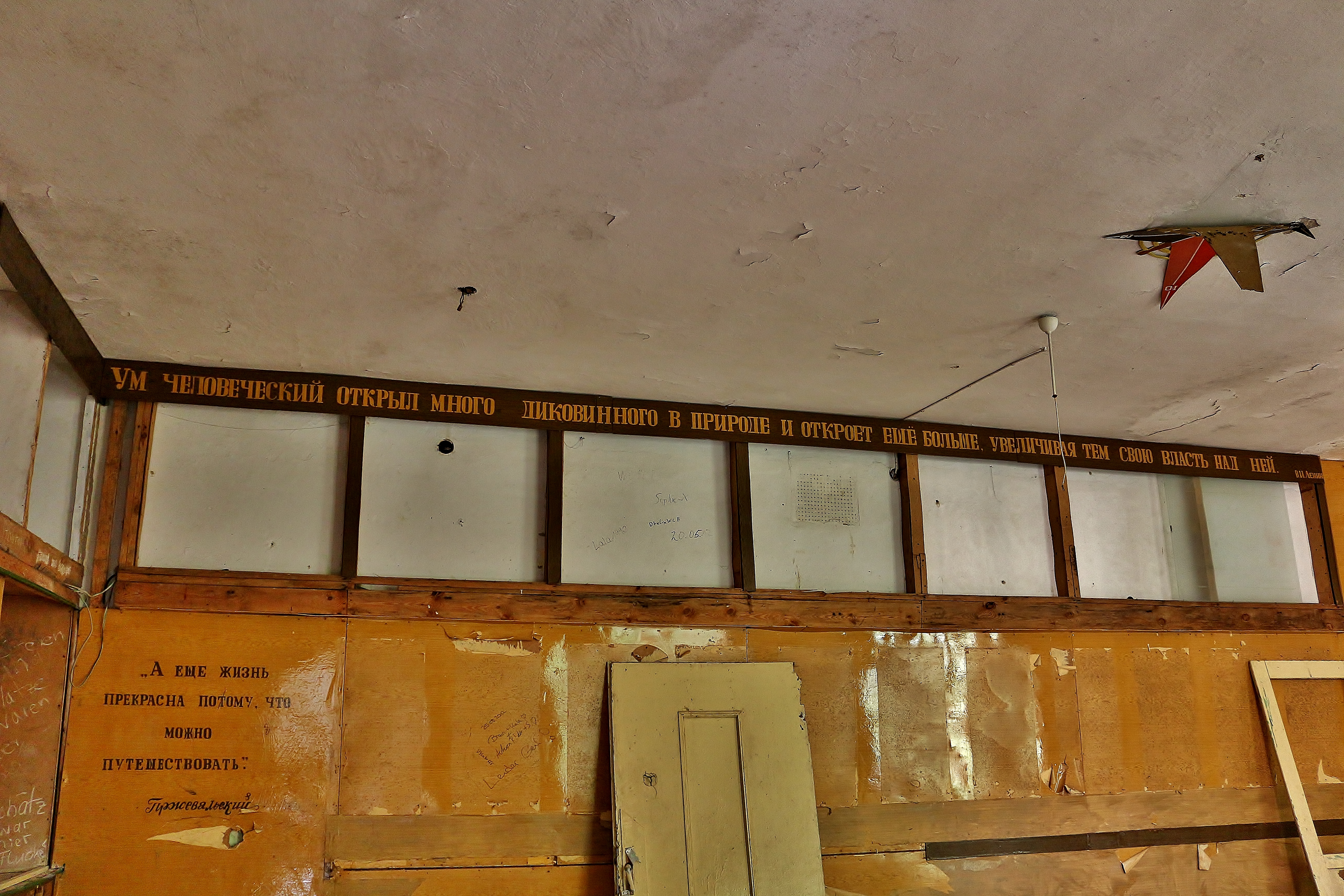In a theatre or conference room of the former airfield still hangs a motto by Lenin: „Learn military affairs – in a serious way.“