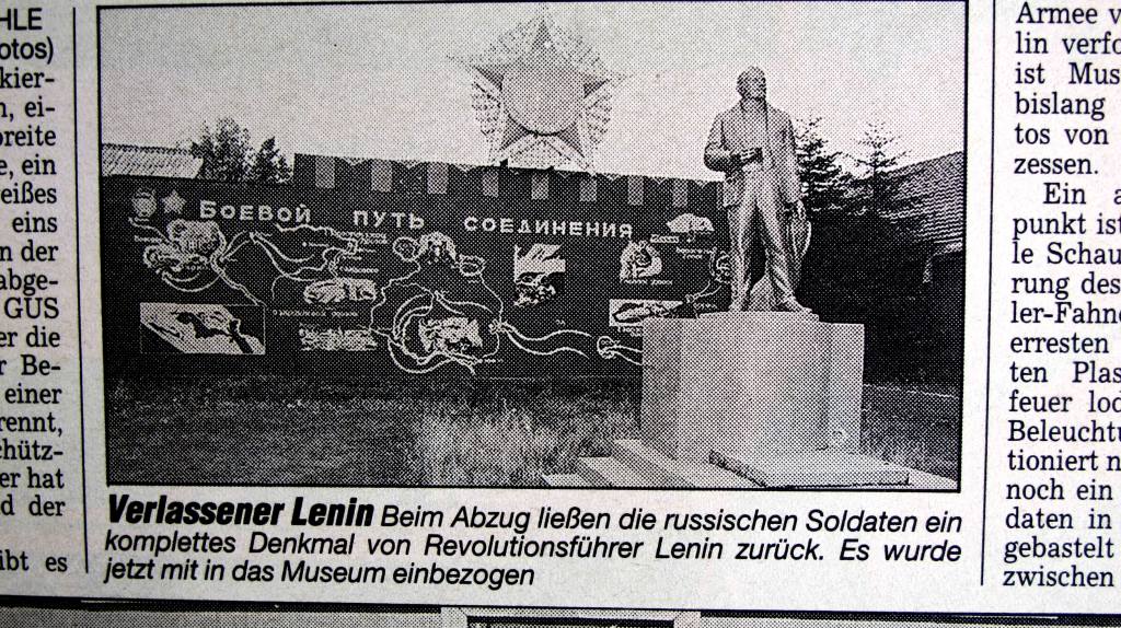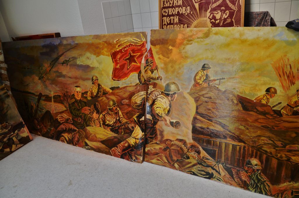 When the Soviet troops withdrew from Schwerin in 1993, they left to the city the exhibits of their „Tradition Cabinet“, a small military museum with various photos, artworks and historical material on the history of Russia and the Red Army. According to the agreement between the Soviet military and the local administration, these relics were to be shown in the city museum. However, they ended up in a depot, where they are still waiting today for a public exposure.