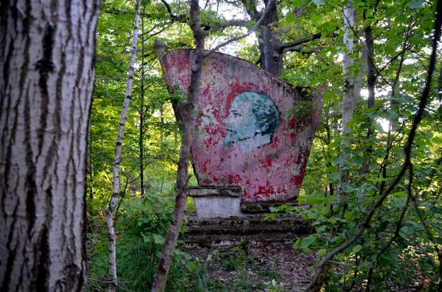 The abandoned airfield in Wittstock an der Dosse presents a contrasting scene: Lenin is standing at the lectern in a Statesmanly pose, but he is covered with fissures and moss. His head is smashed. In the background is a red brick building erected by the Wehrmacht with broken windows and crumbling walls. A time document of the last 100 years of German history in the form of a post-apocalyptic setting. Weiterlesen